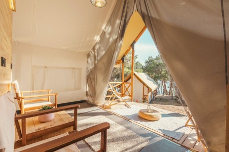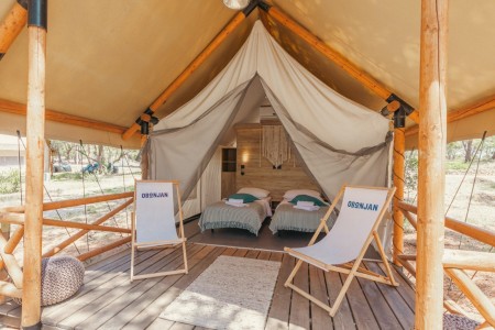 Die nur 56 ha große autofreie und ansonsten unbewohnte Insel Obonjan ist mit ihren üppigen Wäldern, dem türkisfarbenen Meer und unberührten Stränden ein idealer Rückzugsort für Naturliebhaber. Die umweltfreundlichen und maßgeschneiderten Mobilheime und Glamping-Lodges bieten jeden Komfort, den Sie für einen entspannten Sommerurlaub benötigen.