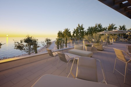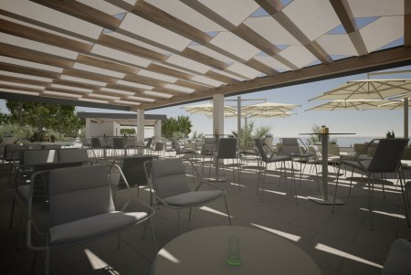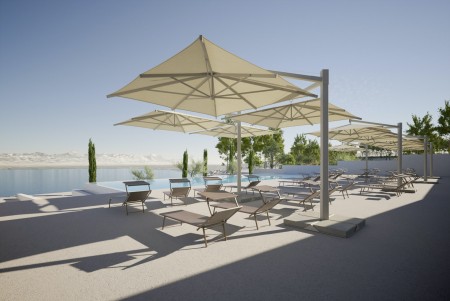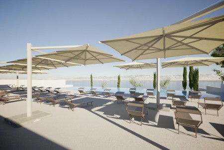 Strand: Gepflegter Fels- und Steinstrand, Sonnenschirme und Liegen gegen Gebühr.