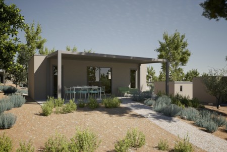 Mobilheim "Luxury Glamping Villa mit Pool" für 4-6 Personen: ca. 69 m², ein Schlafzimmer mit Doppelbett, ein Schlafzimmer mit zwei Einzelbetten, zwei Badezimmer mit Dusche/WC, Wohn-Schlafraum mit Essecke und komplett ausgestatteter Küche (Geschirrspüler, Herd, Kühlschrank, Mikrowelle, Wasserkocher, Kaffeemaschine, Nespresso-Maschine) und Schlafgelegenheit für zwei Kinder bis 11,99 Jahre, Terrasse mit Tisch und sechs Stühlen, zwei Liegestühlen, Sitzgarnitur Sonnenschirm. Außerdem SAT-TV, Safe und Klimaanlage. Das Mobilheim befindest sich in 2. und 3. Reihe zum Meer und verfügt über einen Privatpool (ca. 13 m², 1,30 m tief).