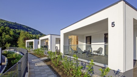 Mobilheim Premium für 4-6 Personen: ca. 36 m², modern eingerichtet, zwei Doppelzimmer, Wohnraum mit Schlafgelegenheit für zwei Personen, Essecke und voll ausgestattete Küchenzeile mit Kühlschrank, Herd, Mikrowelle und Kaffeemaschine, zwei Badezimmer mit Dusche und WC, überdachte Terrasse (ca. 18 m²) mit Sitzgarnitur. Außerdem zwei SAT-TV, WiFi-Internet (kostenlos) und Klimaanlage.