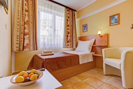 Einzelzimmer: ca. 12 m², Einzelbett, zur Parkseite gelegen.