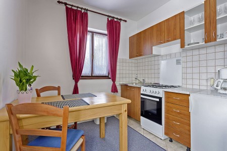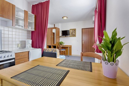 Appartement für 2 Personen: ca. 28 m² in der ersten Etage, ein Schlafzimmer mit Doppelbett, Wohnraum mit Klimaanlage, SAT-TV, Couch, Küche und Essecke, Zentralheizung, Badezimmer mit Dusche und WC.