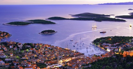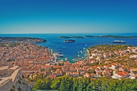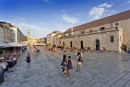Hvar, der Hauptort der gleichnamigen Insel, ist zu Recht beliebtes Ausflugsziel und bevorzugter Anlaufhafen von Seglern und Kreuzfahrtschiffen: Wie eine Bühne schließt sich dem Hafenbecken der Marktplatz an. Die Häuserfassaden, die Kirche San Marco, das Arsenal mit dem Theater von 1612 – all dies spiegelt die kunstsinnige Zeit der Venezianer wider, die in Hvar ihre Spuren hinterlassen haben. Vom Hafen aus kann man die kleinen Gassen bis zur Festung hochsteigen, um dann von einem herrlichen Panoramablick auf die alten Dächer und zu den „Pakleni Otoci“ belohnt zu werden. Abends trifft man sich auf dem Marktplatz, um den typischen Inselwein zu probieren.