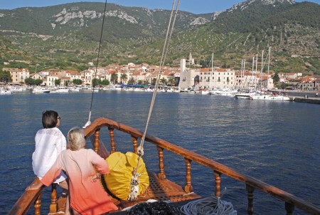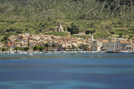 Das Städtchen Komiža liegt auf der Westseite der Insel Vis in einer tief eingeschnittenen Bucht zu Fuße des 587 m hohen Berges Hum. Die traditionellen Wirtschaftszweige sind – wie allgemein auf der Insel Vis – Weinanbau und Fischerei. Rund fünf Seemeilen von Komiža entfernt liegt das Inselchen Biševo mit der berühmten »Blauen Grotte« (Modra špilja). An sonnigen Tagen und bei ruhigem Seegang taucht das Sonnenlicht, das durch die Höhlenöffnung unterhalb des Meeresspiegels eindringt, das Innere der Höhle in einen faszinierenden blauen Farbton.