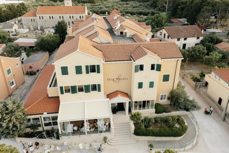 Das neu erbaute Hotel Spongiola befindet sich an der Küste der kleinen, malerischen Insel Krapanj, nur etwa 300 m vom Festland entfernt, und ist von einem wunderschönen Pinienwald umgeben. Es wurde auf dem Grundstück einer alten Schwammtauchergenossenschaft gebaut und beherbergt ein modernes Tauchzentrum. Im kleinen Ortszentrum von Krapanj laden während der Saison Tavernen, Bars und Shops zum Verweilen ein. Die Insel ist seit Jahrhunderten bekannt für ihre Schwammtaucher, die Naturschwämme vom Meeresgrund „ernten“.