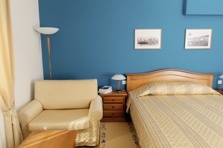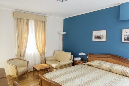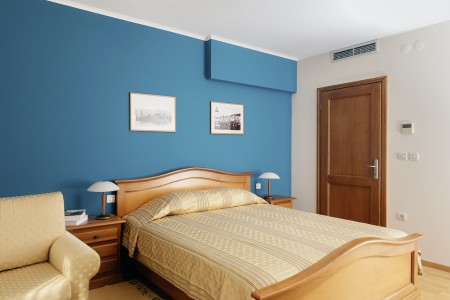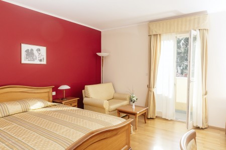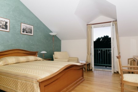 Doppelzimmer: ca. 27 m², großes Doppelbett (180 x 200 cm), auch mit Balkon mit Inselblick buchbar.